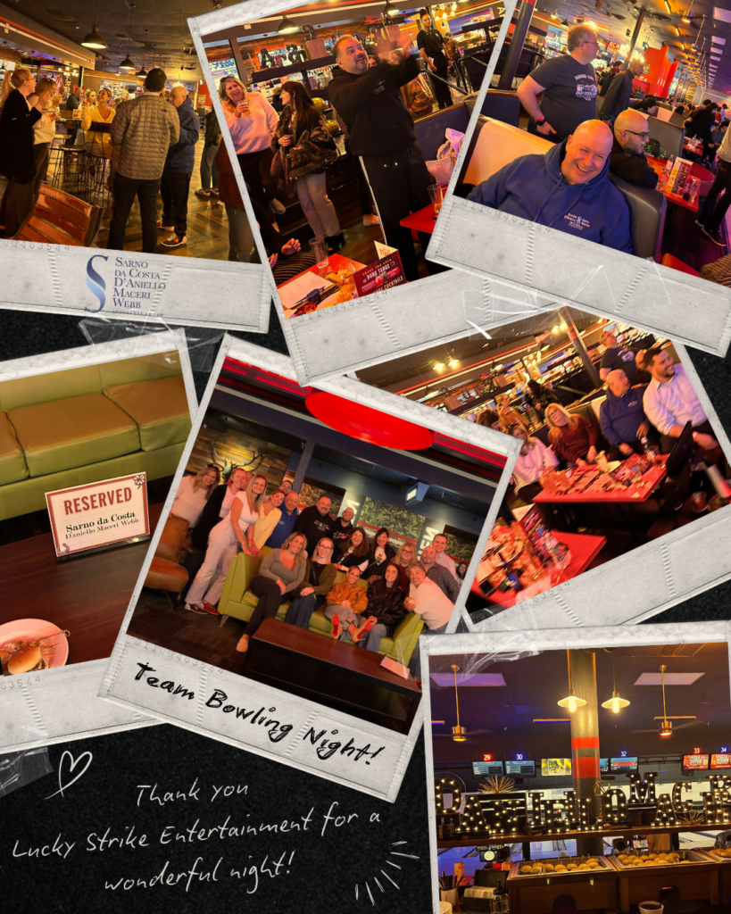 Team spirit and camaraderie was in full swing as colleagues from Sarno da Costa D’Aniello Maceri Webb LLC gathered for an evening of bowling, laughter, and friendly competition. Representing 3 of the firm’s 5 offices, our Roseland office proudly came in first place, rolling their way to victory with an impressive and powerful performance. Morristown secured second place, while Eatontown rounded out the standings.